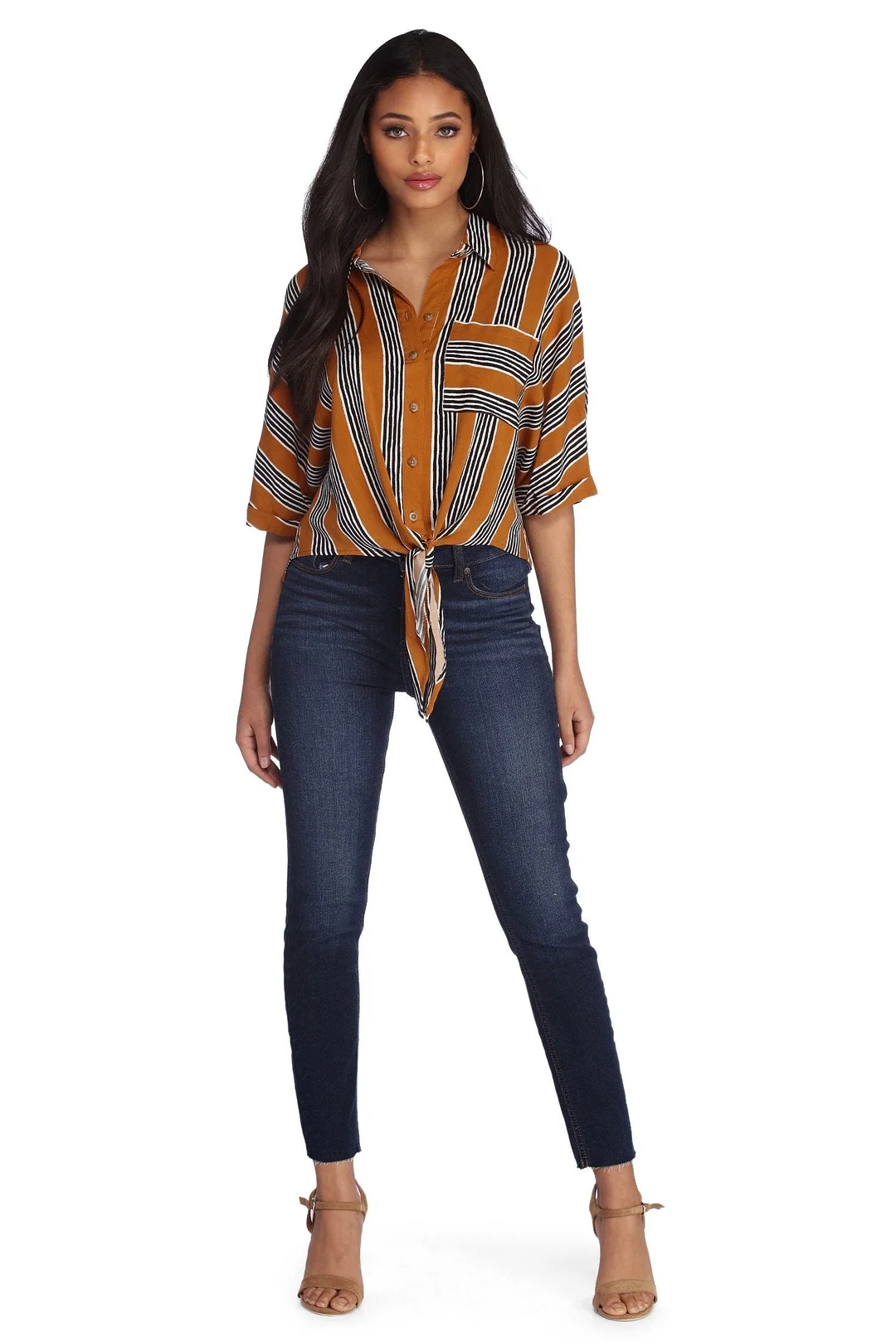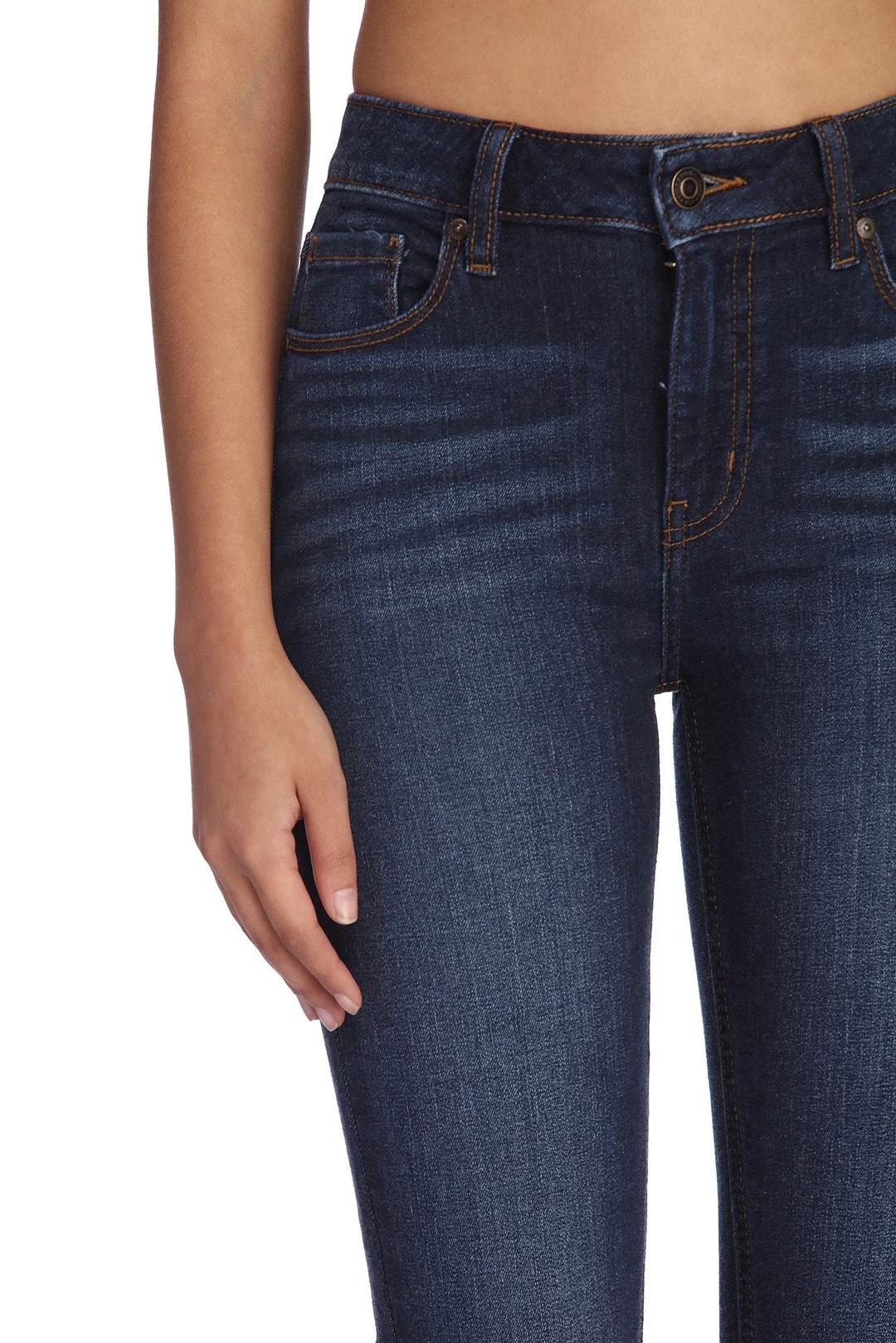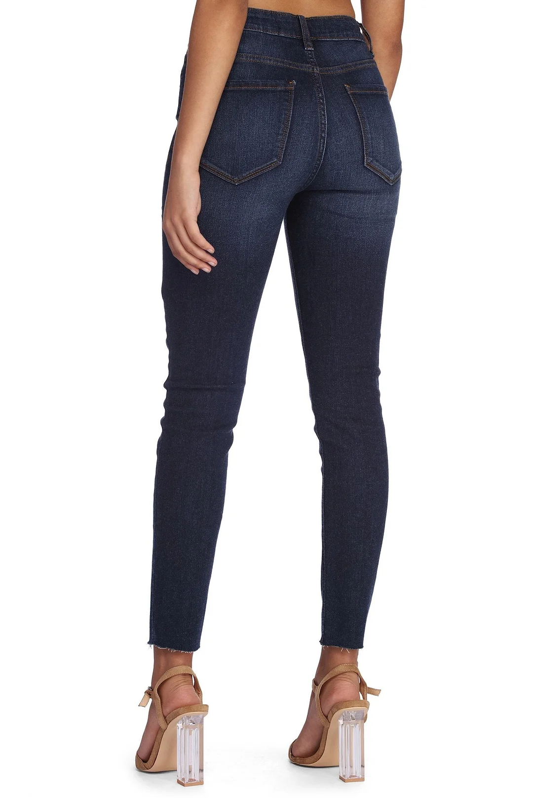 These high rise skinny cropped jeans are an essential to any look! They feature a high rise waist, the traditional five pocket and belt loop design, a front button and hidden zipper closure, a skinny leg fit, and a raw cut, cropped hem. The dark wash jeans are composed of a denim fabric that offers moderate stretch.